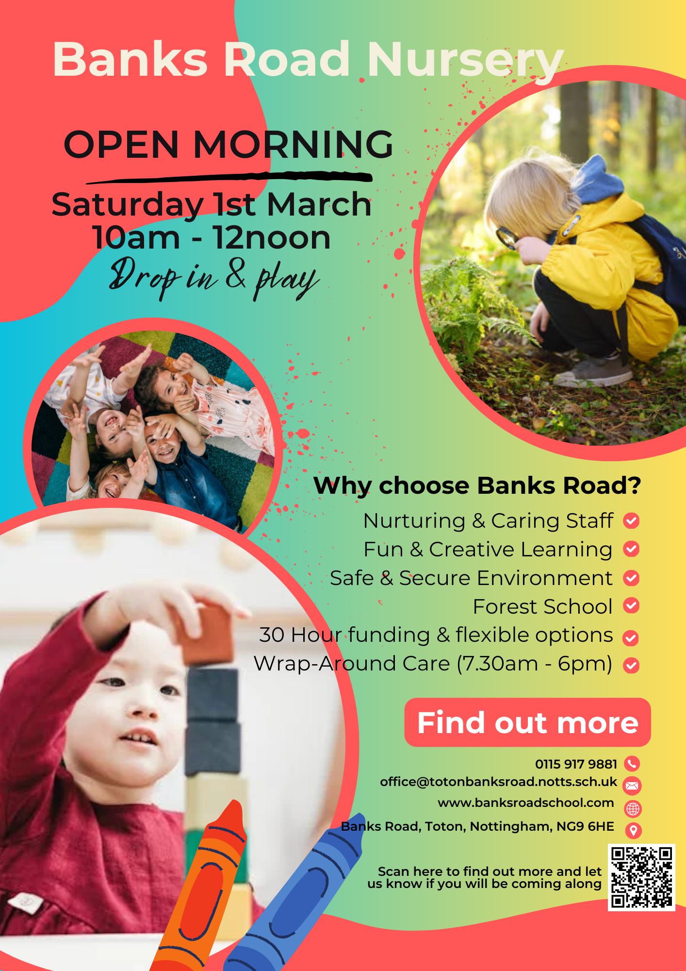 We will be holding a Nursery open morning on a Saturday 1st March 2025. Parents and children are invited to come and look around the nursery and register an interest for September. This will ensure that contact details are current and application packs are sent to the correct address.
